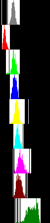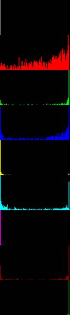 Table 3 illustrates application of the double deconvolution technology to 4 whole slide images of specimens suspected of colorectal tumors. The first 2 are negative cases and the last 2 are positive cases according to the pathologists who made the diagnoses, and the double deconvolution are consistent with human doctor's diagnoses. Note the shape of group C distribution, asymmetry (with large side lobe on the right) indicates cancers too, besides the hint from group B.